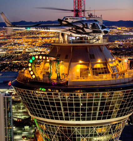 Our Las Vegas Night Strip helicopter tours operate from our private Las Vegas Harry Reid Airport VIP Heliport facility – located only 10 minutes from the Las Vegas Strip Resorts. Upon arrival at our private helicopter facility, you will board a luxurious 5 Star helicopter as you rise above the Las Vegas Strip city lights. Choose 5 Star for a romantic Las Vegas helicopter tour and dining experience. Our new Las Vegas VIP Helicopter Strip Flight & Eiffel Tower Dinner Celebration Package provides spectacular views above & below the Las Vegas Strip resort hotels.